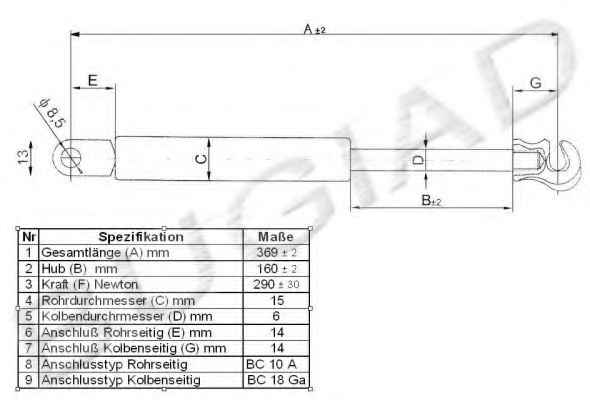 Газова пружина, кришка багажника