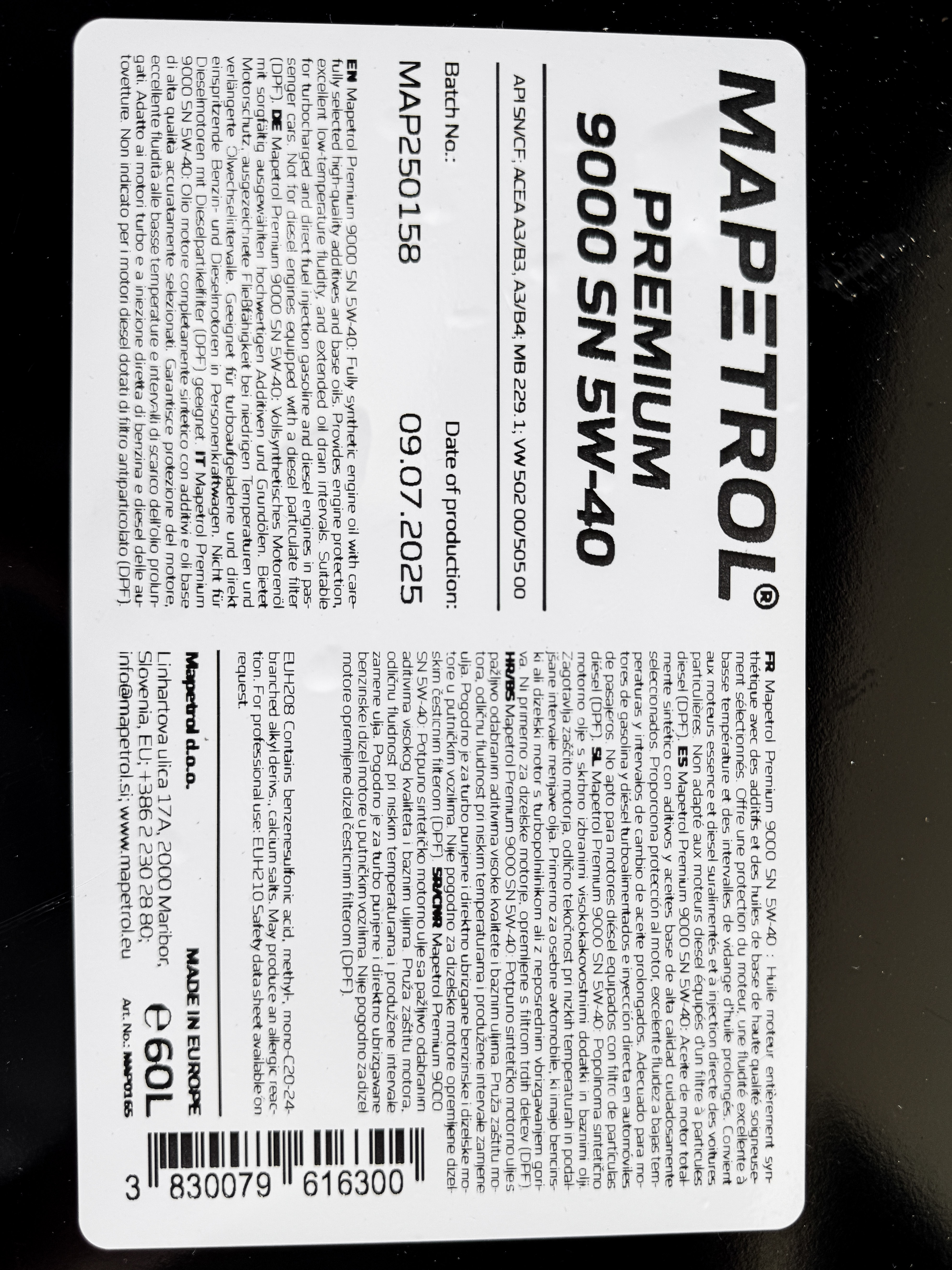 Купити MAPETROL MAP0165 Олива моторна MAPETROL PREMIUM 9000 SN 5W-40 60L або його аналоги - Autooriginal.de