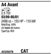 WALKER AD25078 Система випуску відпрацьованих газів