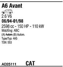 WALKER AD25111 Система випуску відпрацьованих газів