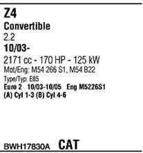 WALKER BWH17830A Система выпуска ОГ