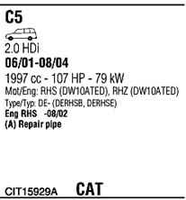 WALKER CIT15929A Система випуску відпрацьованих газів