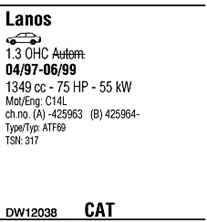| Номер | DW12038 |