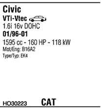 WALKER HO30223 Система випуску відпрацьованих газів