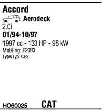 WALKER HO60025 Система випуску відпрацьованих газів
