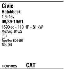 WALKER HO61025 Система випуску відпрацьованих газів