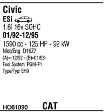 WALKER HO61090 Система випуску відпрацьованих газів
