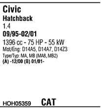 WALKER HOH05359 Система выпуска ОГ