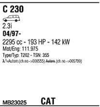WALKER MB23025 Система випуску відпрацьованих газів