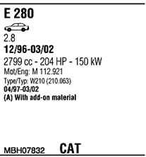 WALKER MBH07832 Система випуску відпрацьованих газів
