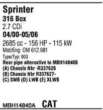 WALKER MBH14840A Система выпуска ОГ