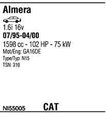 WALKER NI55005 Система випуску відпрацьованих газів