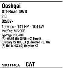WALKER NIK11140A Система выпуска ОГ