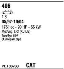 WALKER PET08708 Система випуску відпрацьованих газів
