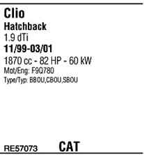WALKER RE57073 Система випуску відпрацьованих газів