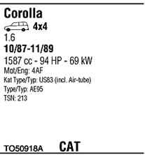 WALKER TO50918A Система випуску відпрацьованих газів