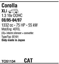 WALKER TO51134 Система випуску відпрацьованих газів
