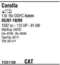 WALKER TO51156 Система випуску відпрацьованих газів