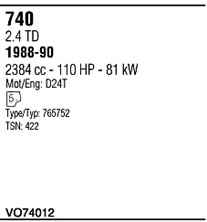 | Номер | VO74012 |