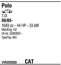 WALKER VW20063 Система випуску відпрацьованих газів