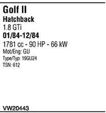 | Номер | VW20443 |