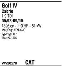 | Номер | VW20576 |