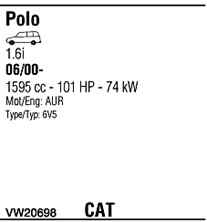 WALKER VW20698 Система випуску відпрацьованих газів