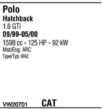 | Номер | VW20701 |