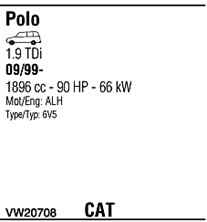 WALKER VW20708 Система випуску відпрацьованих газів