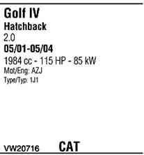 | Номер | VW20716 |