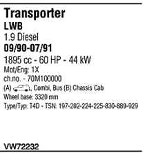 | Номер | VW72232 |