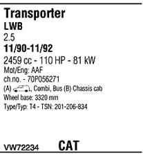 | Номер | VW72234 |