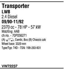 | Номер | VW72237 |