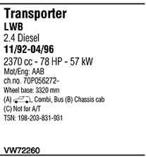 | Номер | VW72260 |