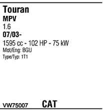 | Номер | VW75007 |