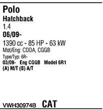 WALKER VWH30974B Система выпуска ОГ
